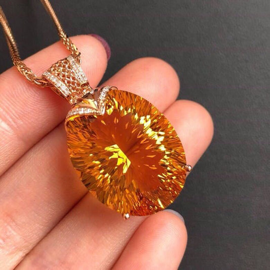 Citrine Pendant, Large Grain Crystals, All-clean Fire, Flashing S925 Silver, Gold-plated Inlaid